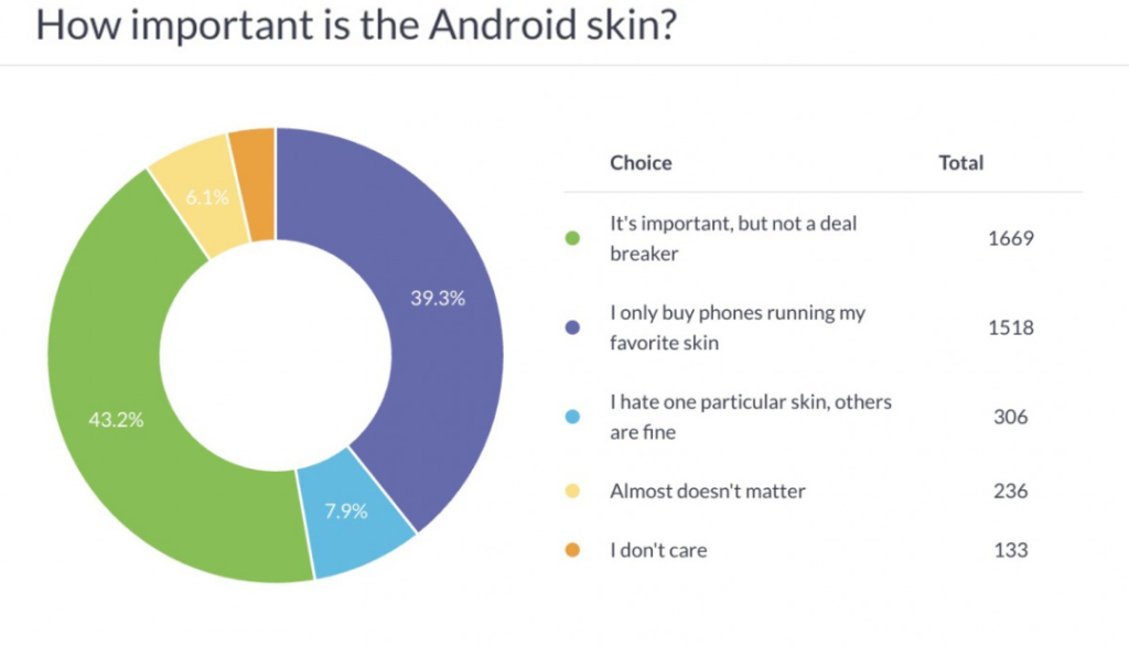 Hasil ini sejalan dengan pertanyaan survei yang lain: Seberapa penting skin Android bagi Anda?